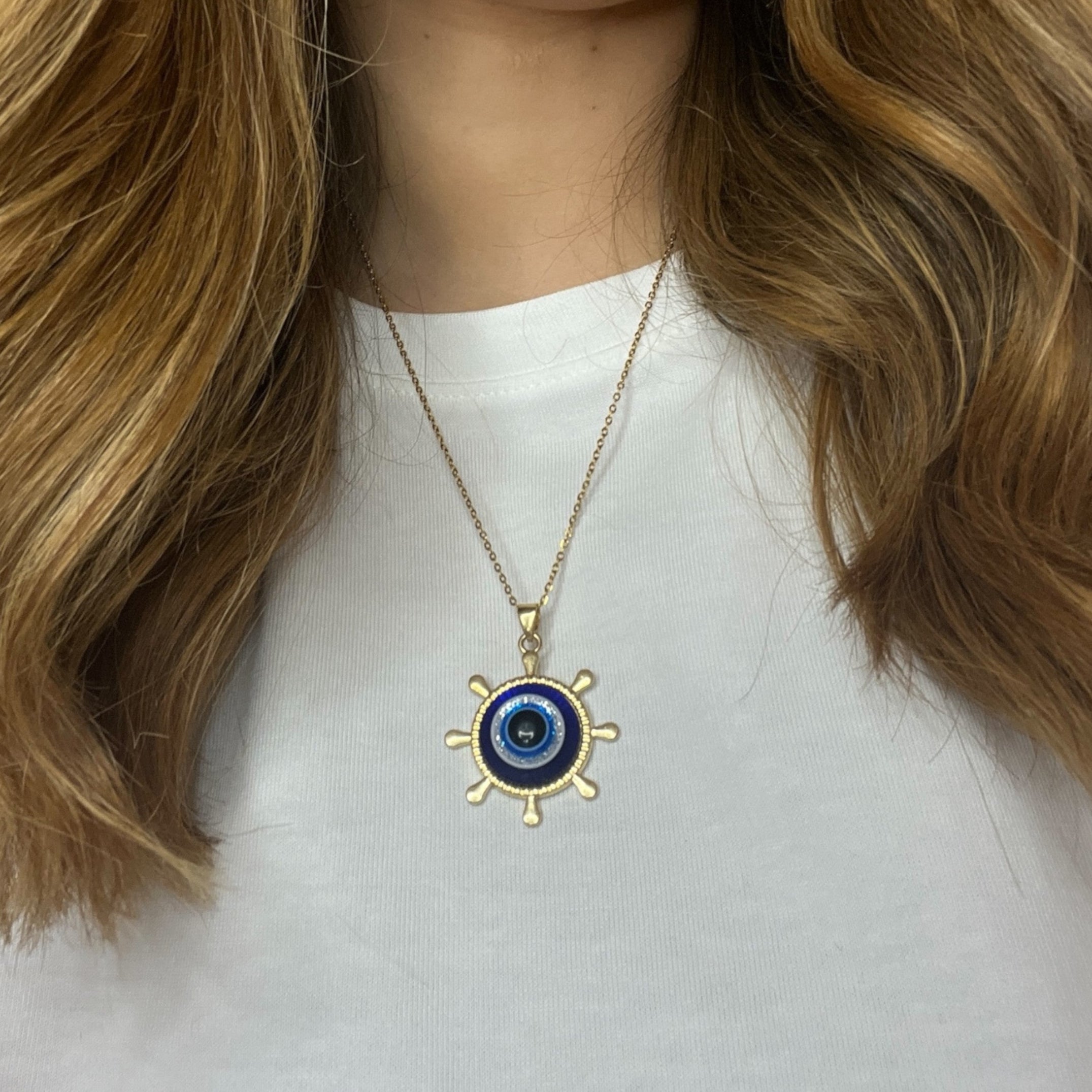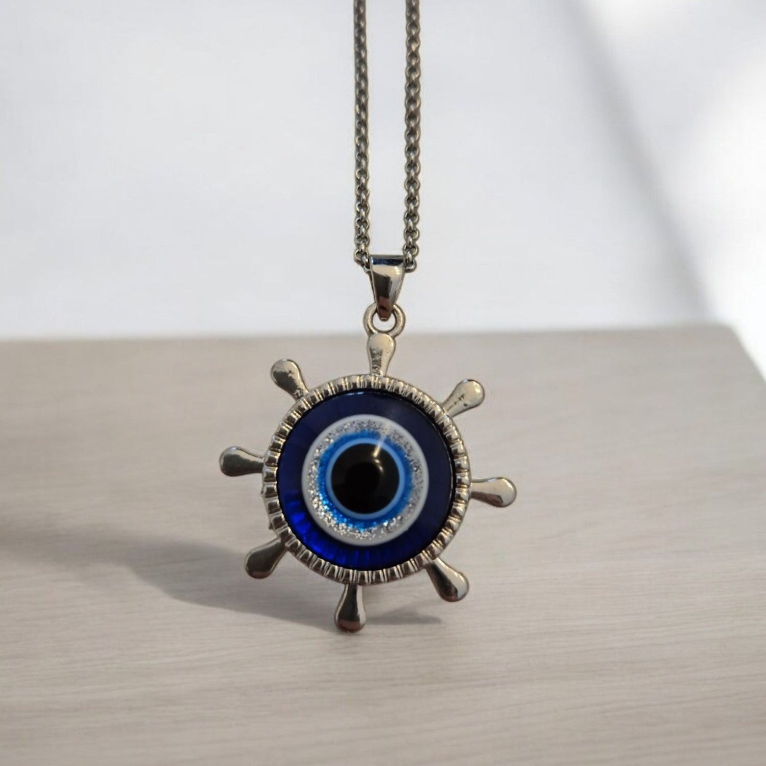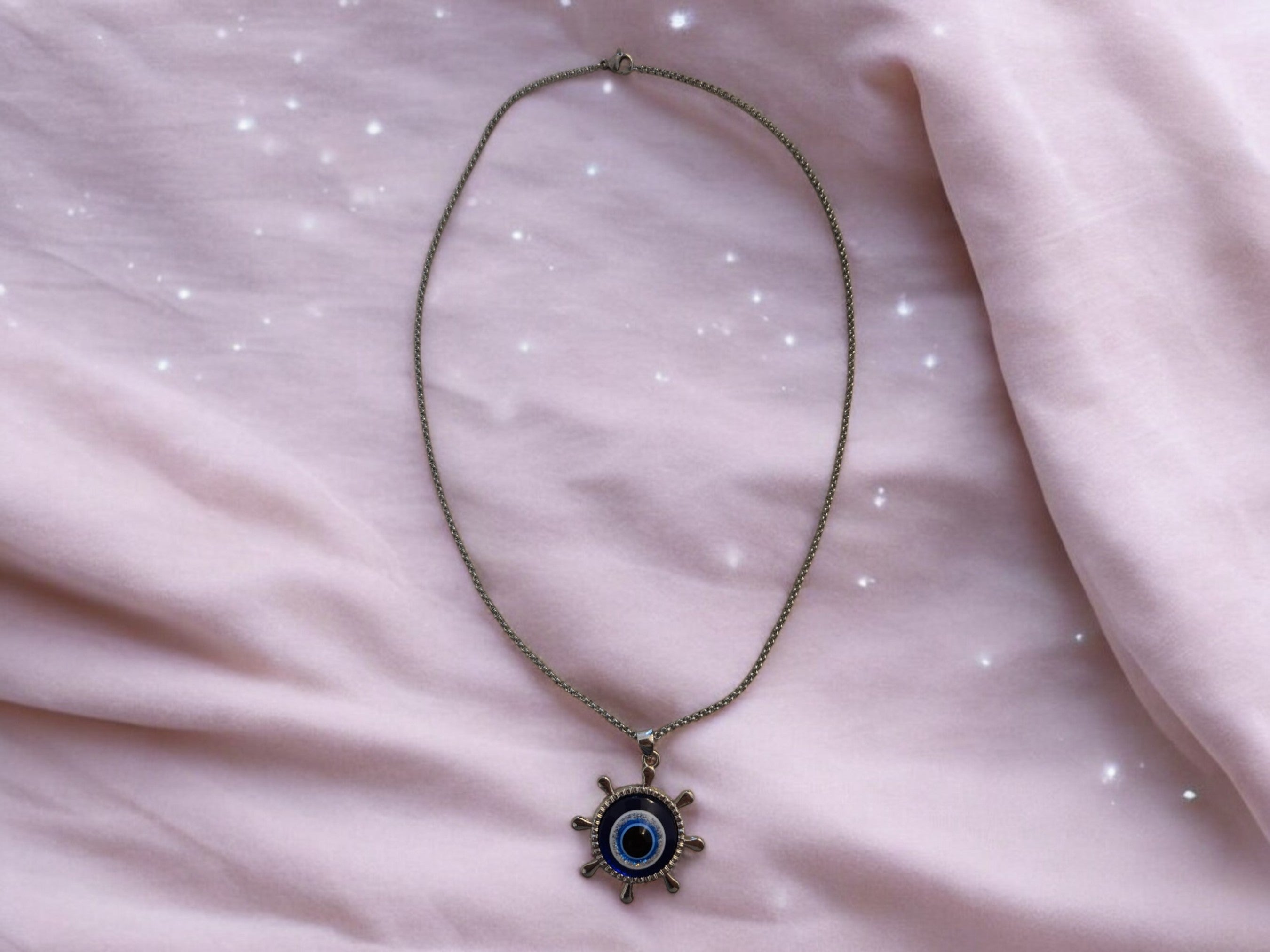 Ce collier intemporel et protecteur se distingue par son pendentif œil bleu, symbole ancestral de chance et de protection contre le mauvais œil. Encadré d’un design argenté délicatement travaillé, ce bijou offre une allure bohème et mystique. La chaîne argentée fine ajoute une touche d'élégance minimaliste, faisant de ce collier un accessoire idéal pour les esprits libres et spirituels. Portez-le seul ou superposé à d'autres colliers pour un look moderne et unique.