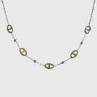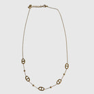Un collier délicat qui joue l’équilibre parfait entre finesse et caractère. Sa fine chaîne est rythmée par des maillons grains de café — symbole intemporel d’élégance rétro — et de petites perles lisses qui apportent un éclat subtil à l’ensemble.