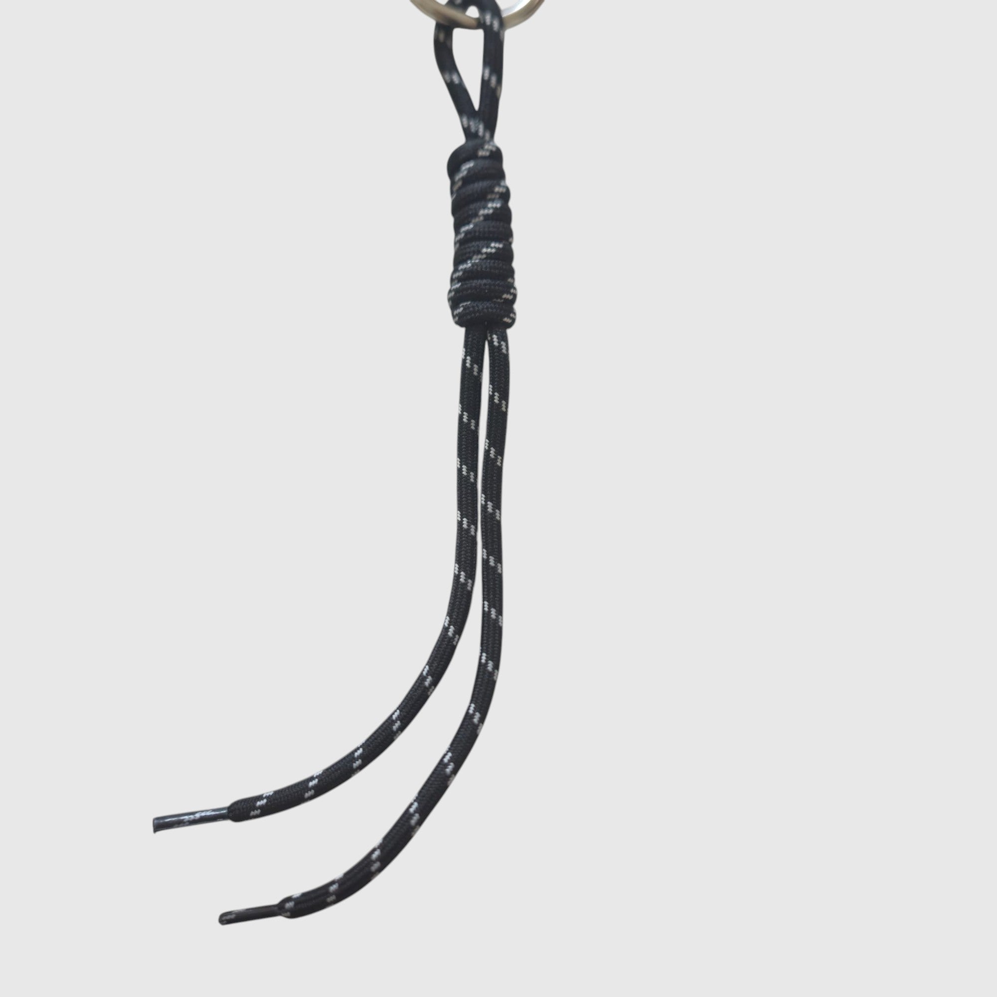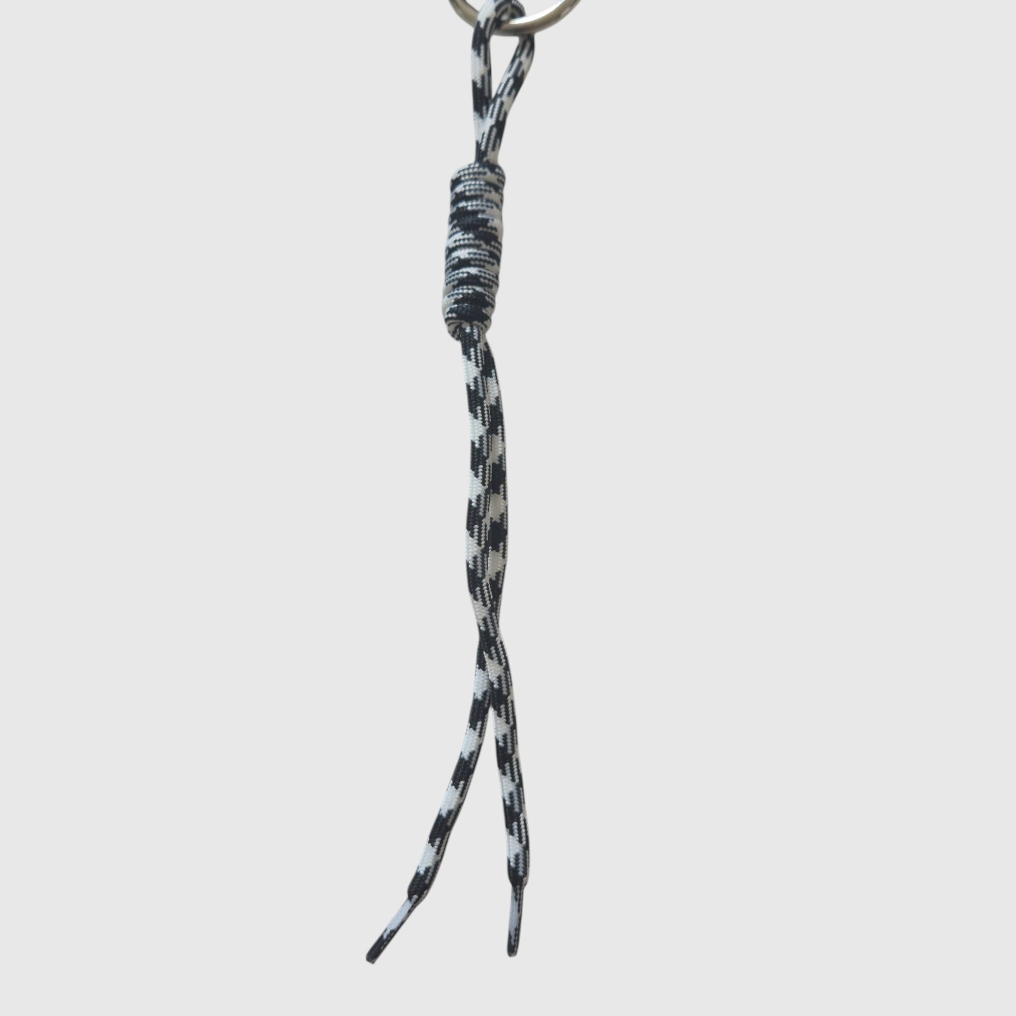 - Double cordons tressés (noir et blanc / noir et gris), noués façon macramé : esprit street affirmé et contrastes graphiques.