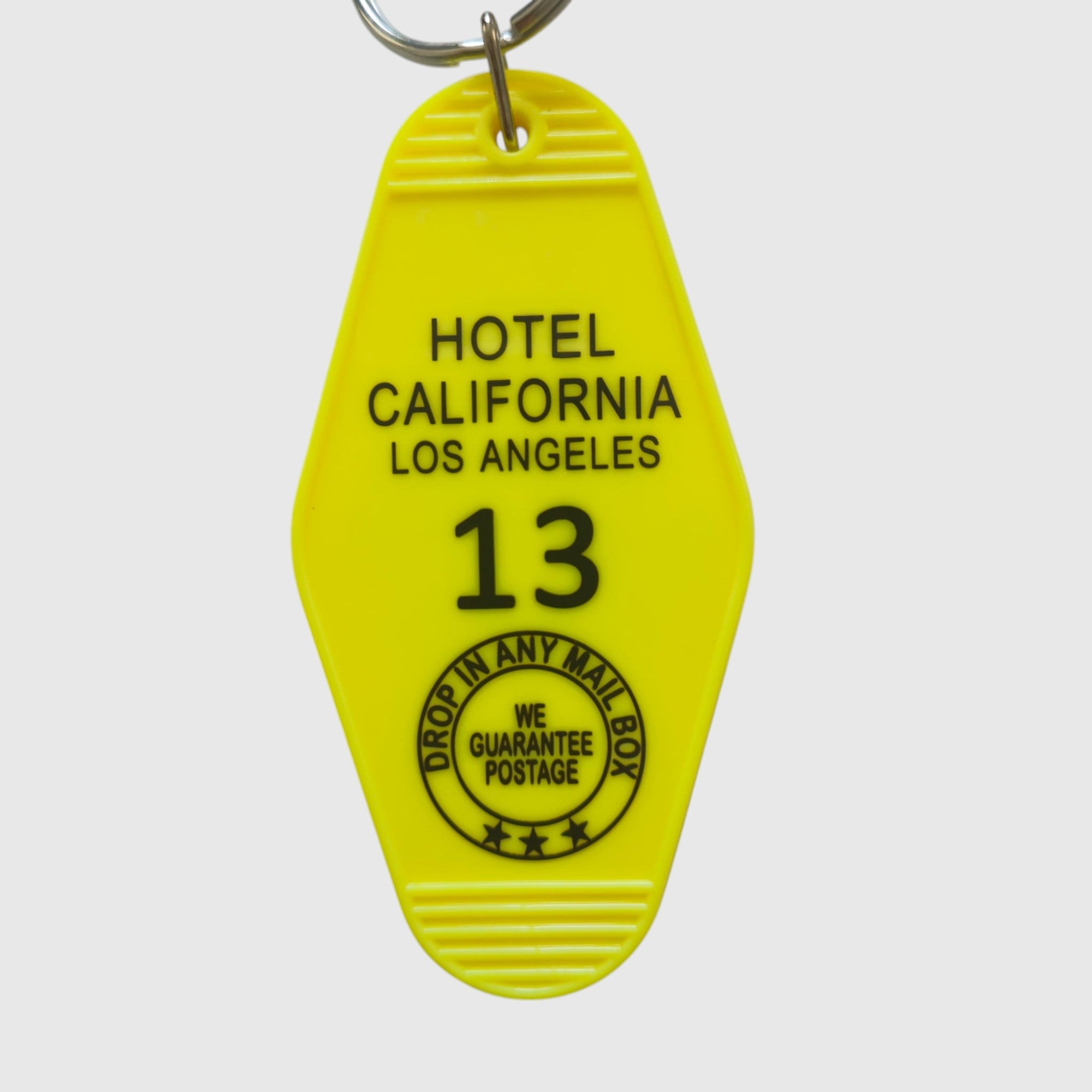 - Plaque motel transparente "Hotel California - Room 13" : clin d’œil énigmatique et légèrement rock, et de l'autre côté "You can check out any time"