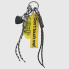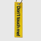 - Étiquette jaune vif brodée Don't touch me! : message cash et couture à la fois.