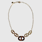 Ce bijou se suffit à lui-même : porté seul, il devient la pièce maîtresse d’un look, une signature qui mêle esprit rétro et allure contemporaine. Sa palette chaude, entre doré et brun profond, en fait un accessoire versatile, facile à associer à des teintes neutres comme à des couleurs vibrantes.