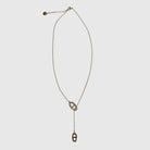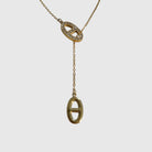 Un collier cravate tout en délicatesse, qui joue la carte de la féminité subtile et lumineuse. Sa fine chaîne dorée se termine par une chute élégante, reliée à un maillon grain de café pavé de strass scintillants. Suspendu à l’extrémité, un second maillon doré prolonge la ligne, comme une étoile filante qui effleure la peau.