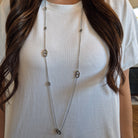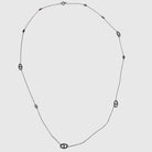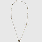 Un sautoir fin et aérien, ponctué de maillons grains de café qui semblent flotter délicatement sur une chaîne légère. Avec son rythme subtil et son éclat discret, il joue la carte de l’élégance sans effort, celui qu’on porte au quotidien comme un talisman moderne.