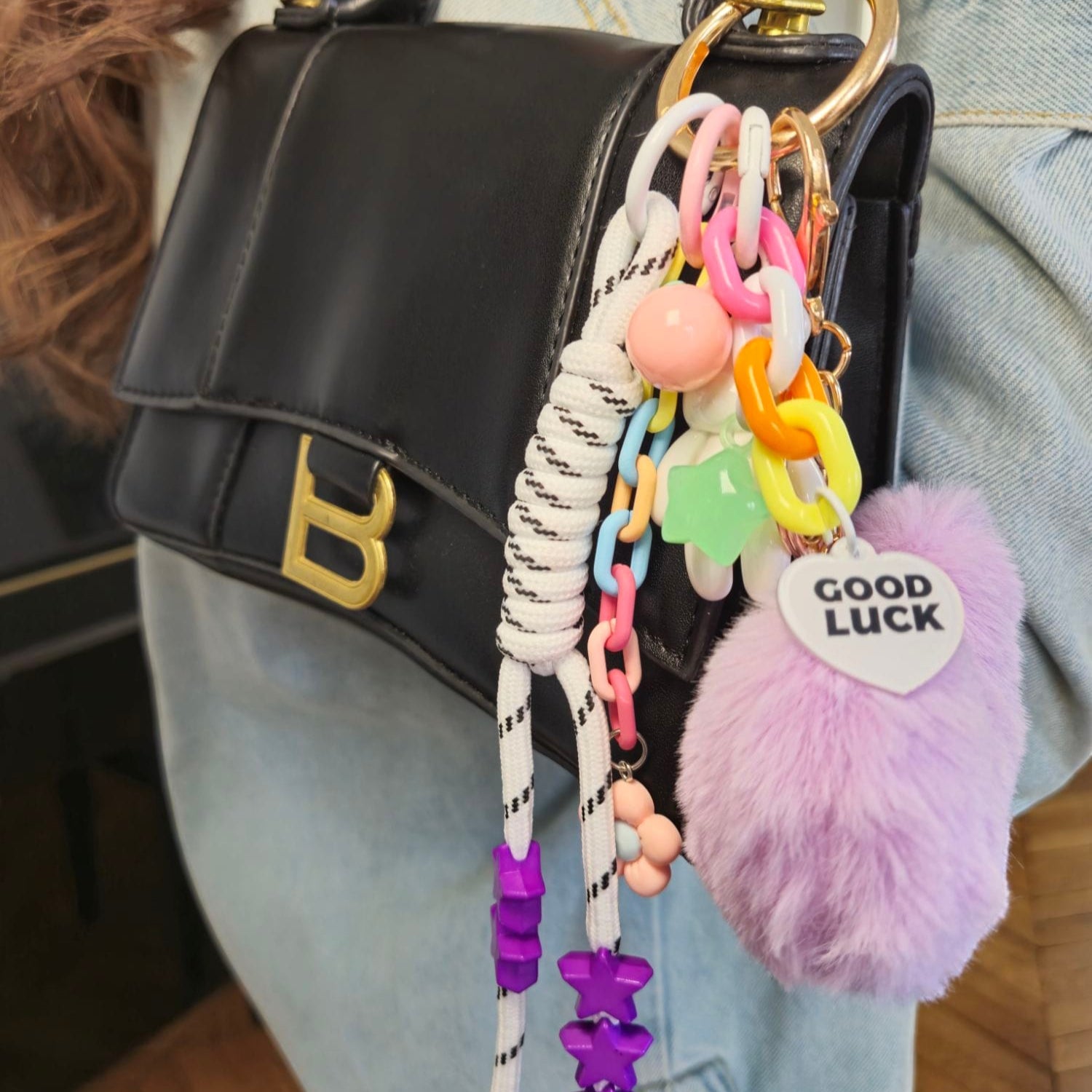 Un bijou de sac tout en douceur et en couleurs pastels, parfait pour ajouter une touche kawaï et réconfortante à votre quotidien. Entre textures moelleuses, symboles porte-bonheur et détails ludiques, cet accessoire est une véritable bulle de tendresse à emporter partout.