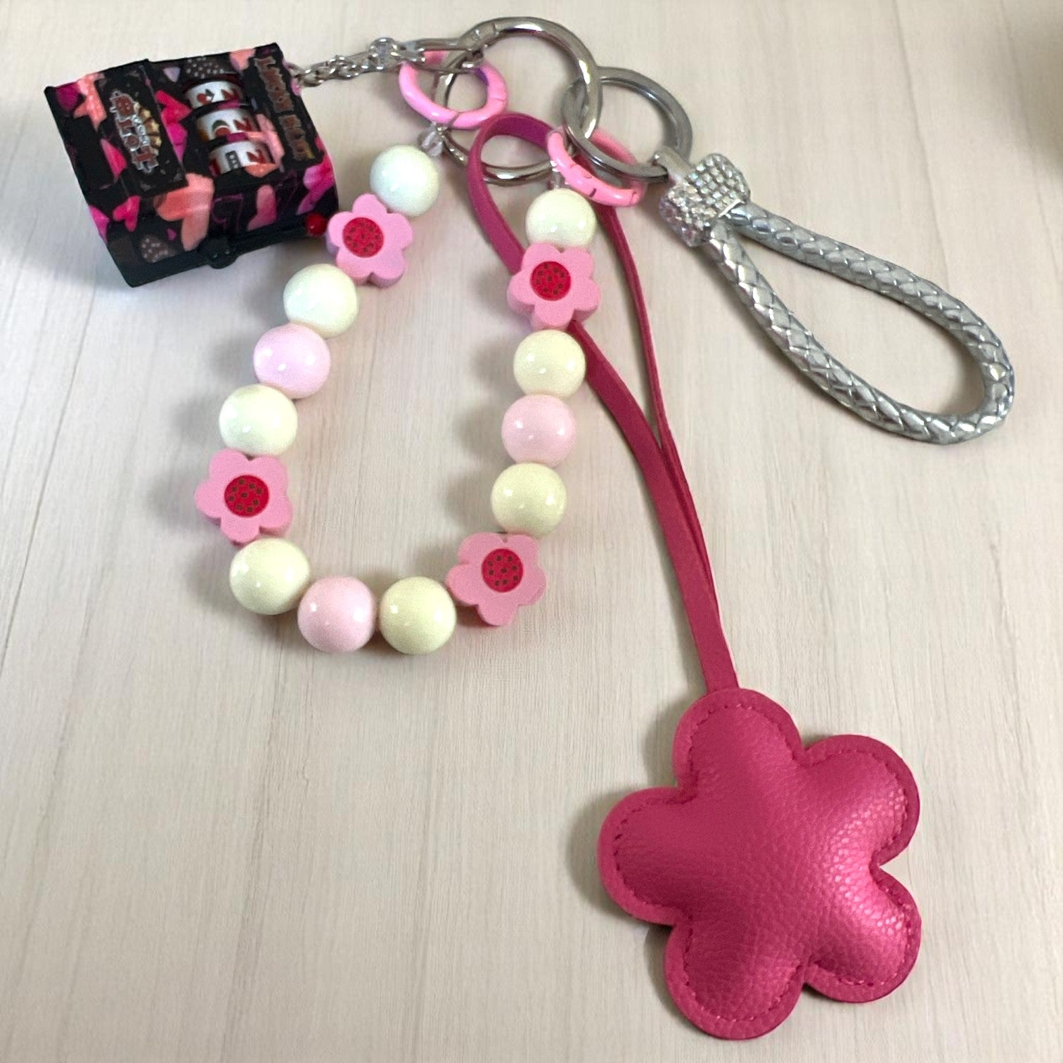 Fleurs roses avec centre rouge : ambiance kawaii et touche fleurie ultra cute.