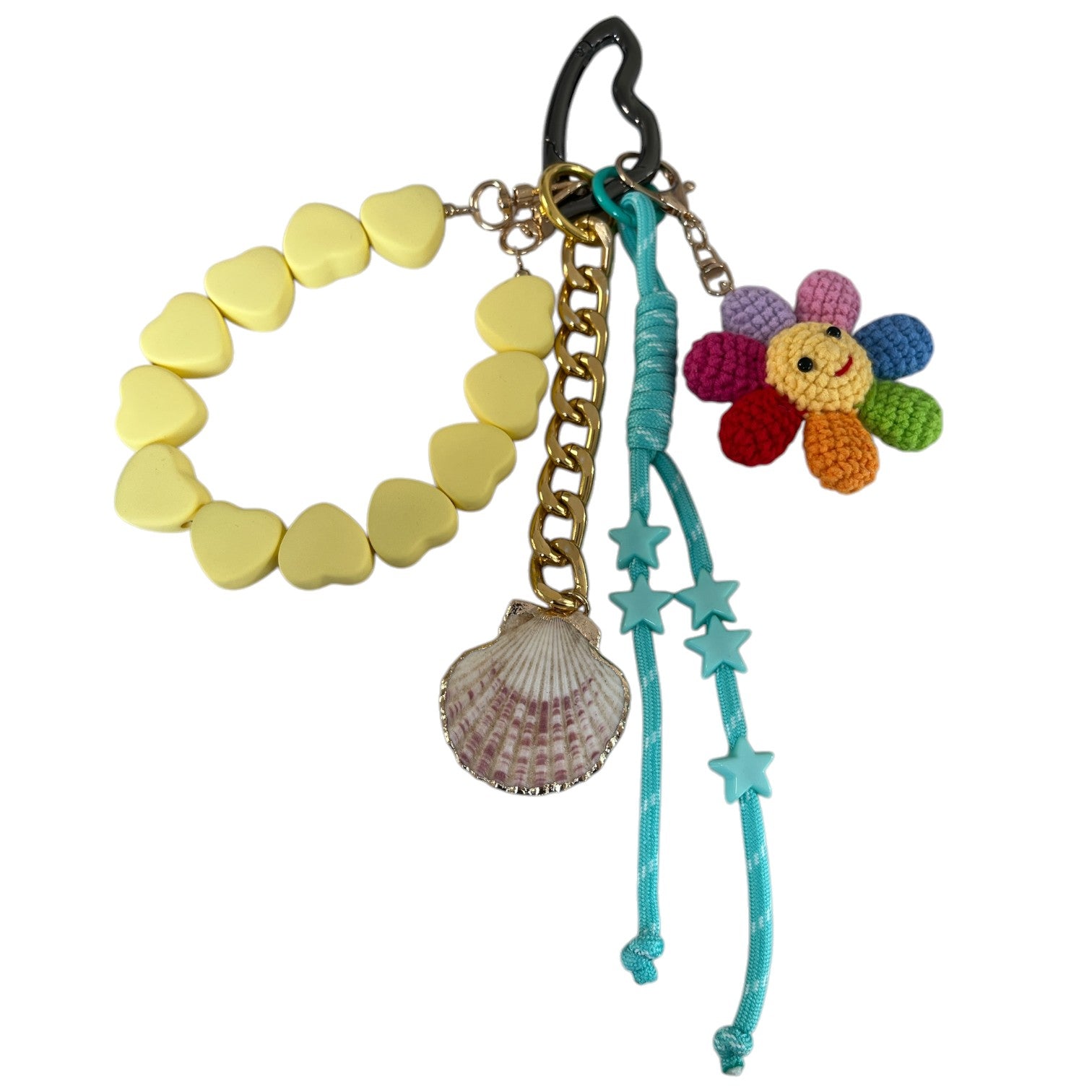 Un bijou de sac comme une balade au bord de la mer, les pieds dans le sable et le cœur léger. Ce petit concentré de bonne humeur mêle textures moelleuses, perles ensoleillées et symboles d’été pour créer un accessoire réconfortant et joyeux à glisser dans sa vie.