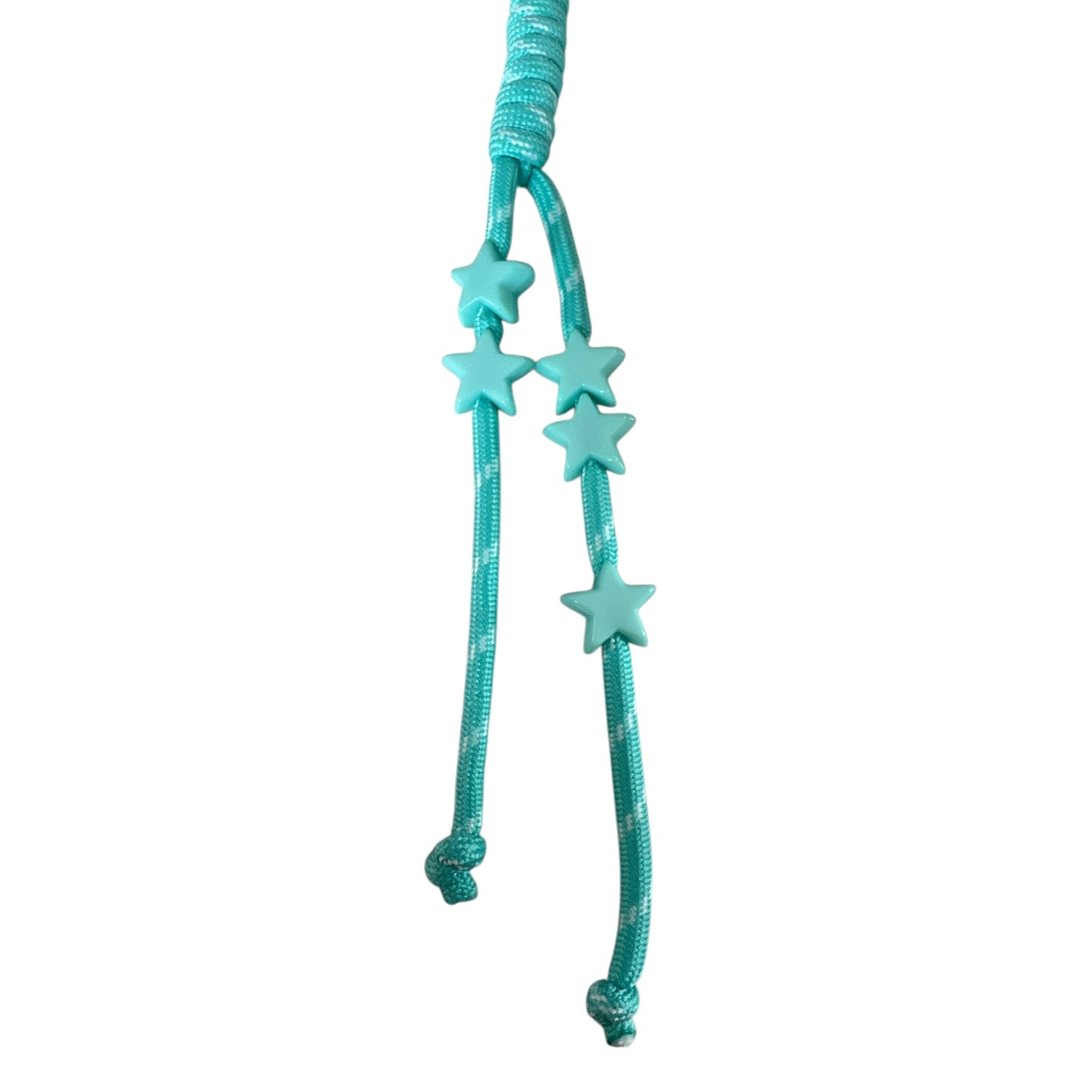 Cordon turquoise avec étoiles : comme un ciel d’été rempli de promesses.