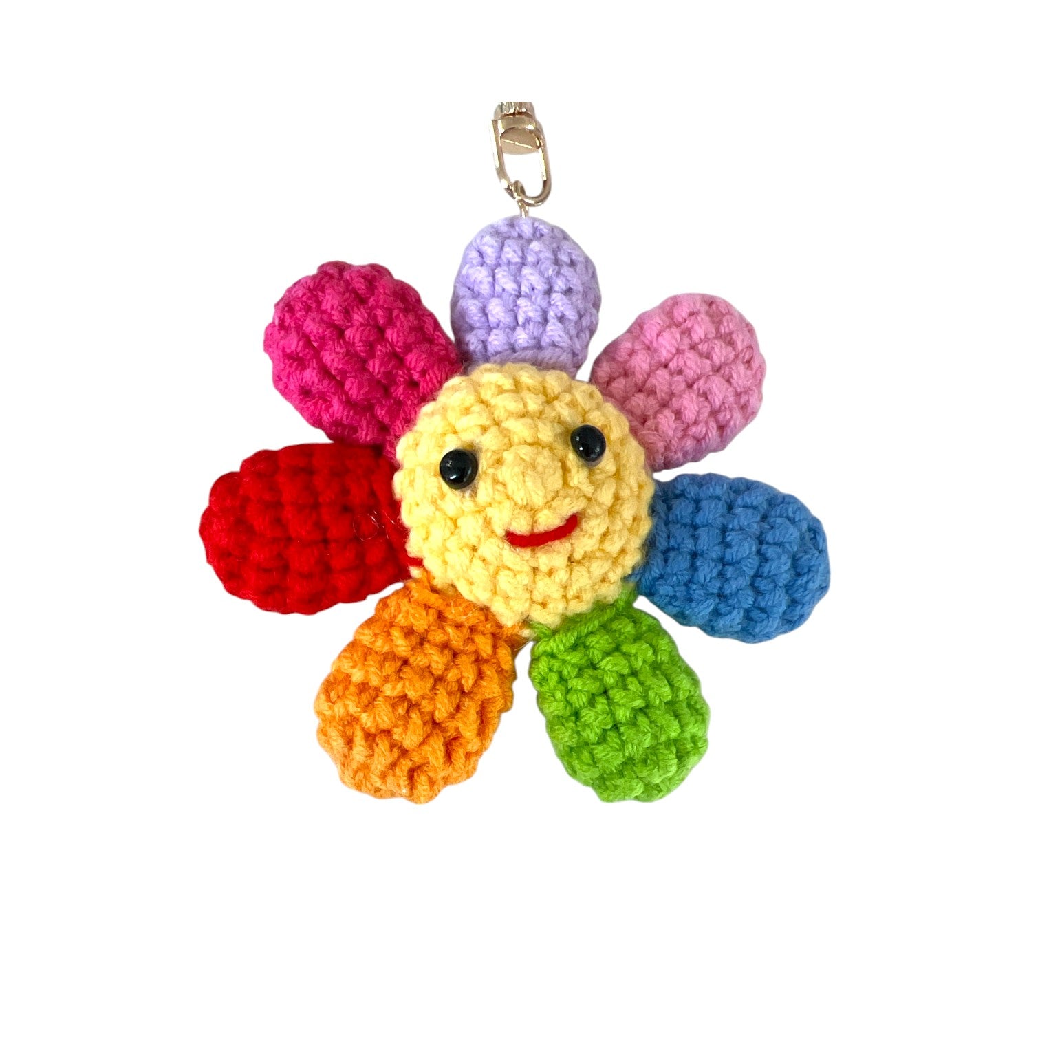 Fleur arc-en-ciel en crochet : un sourire dansant, plein de tendresse et d’énergie douce.